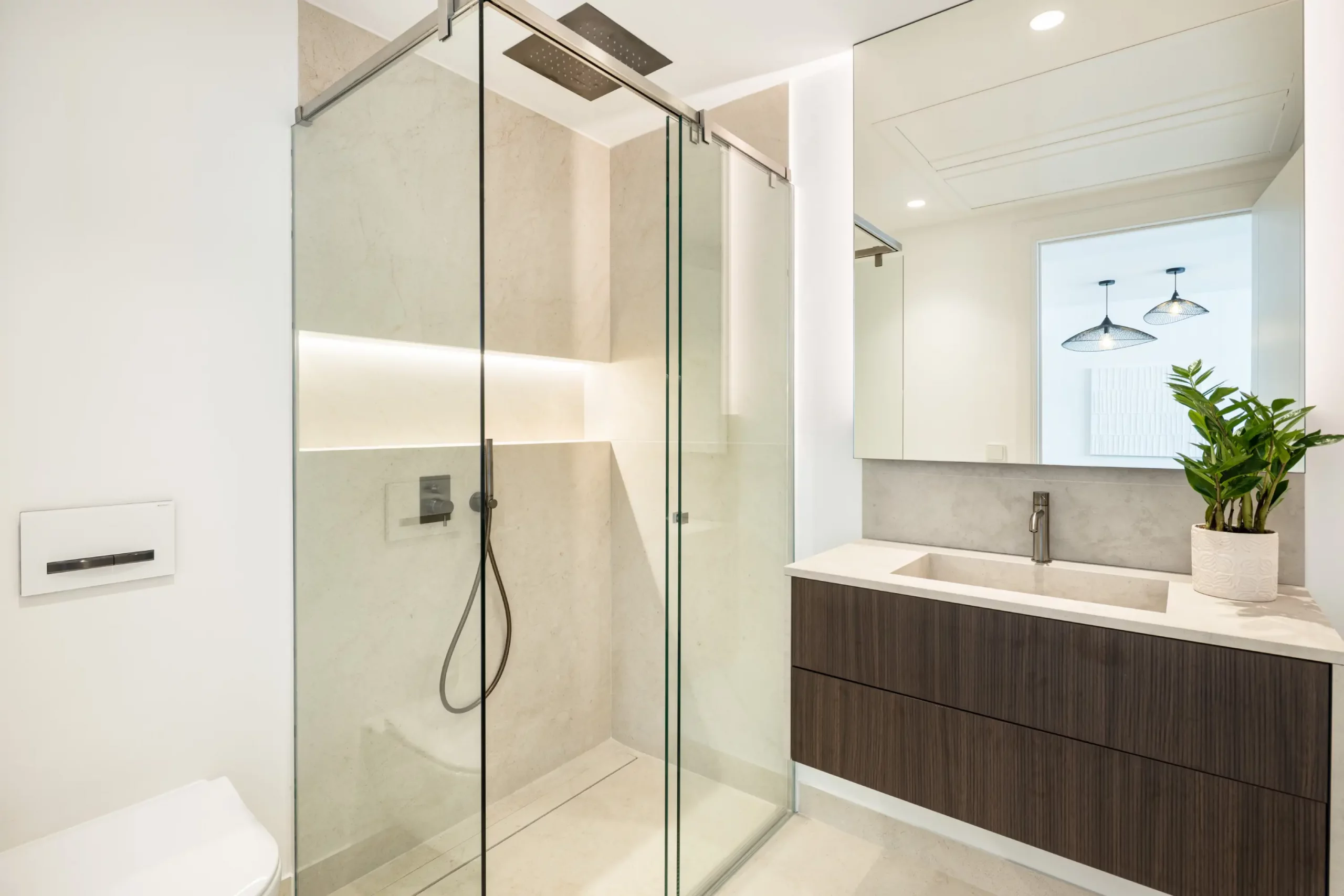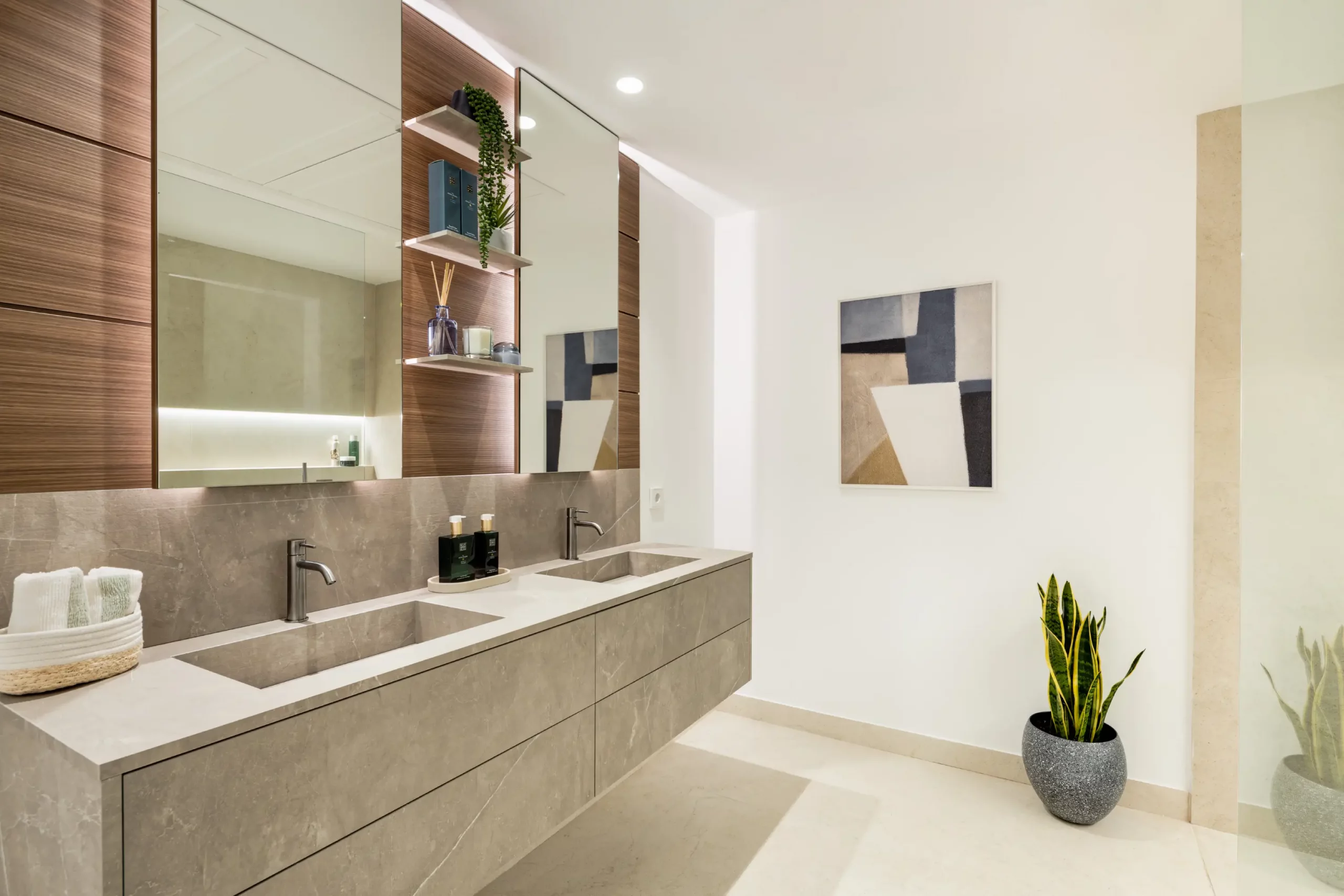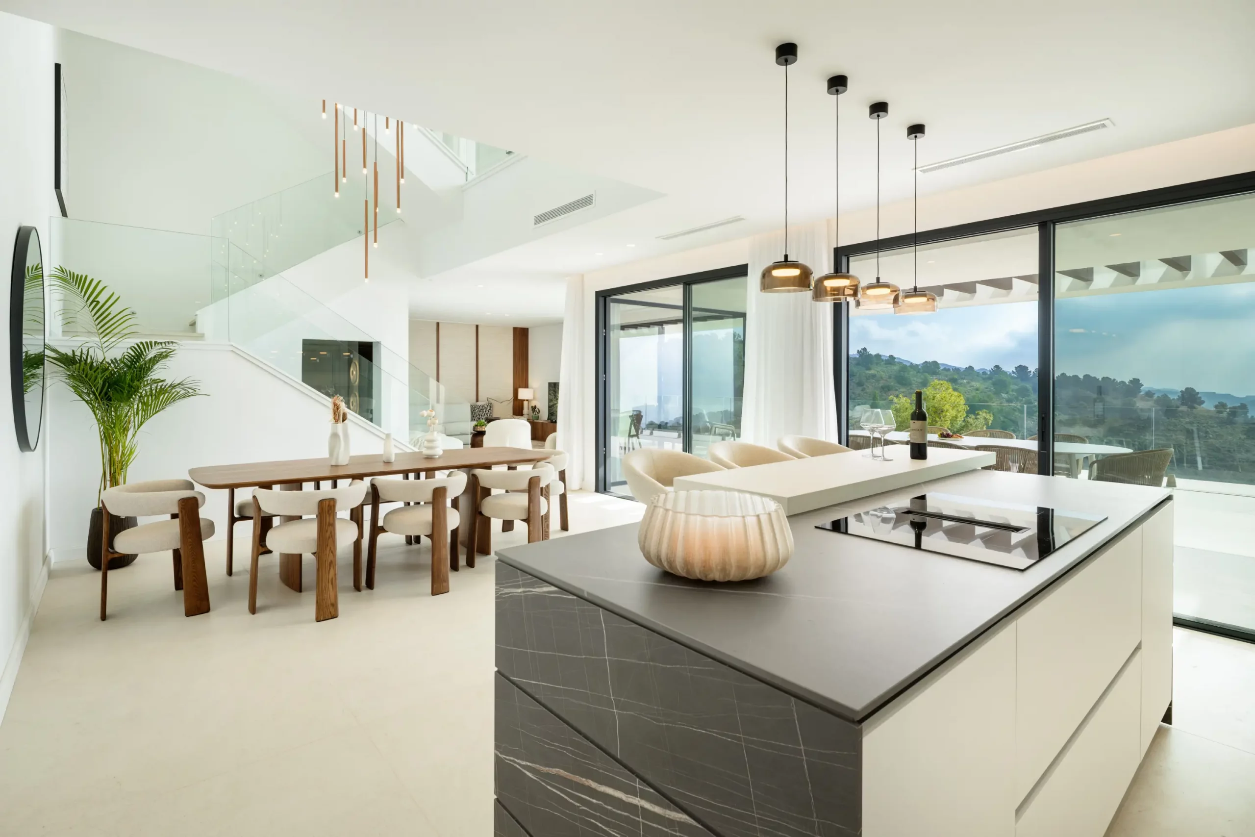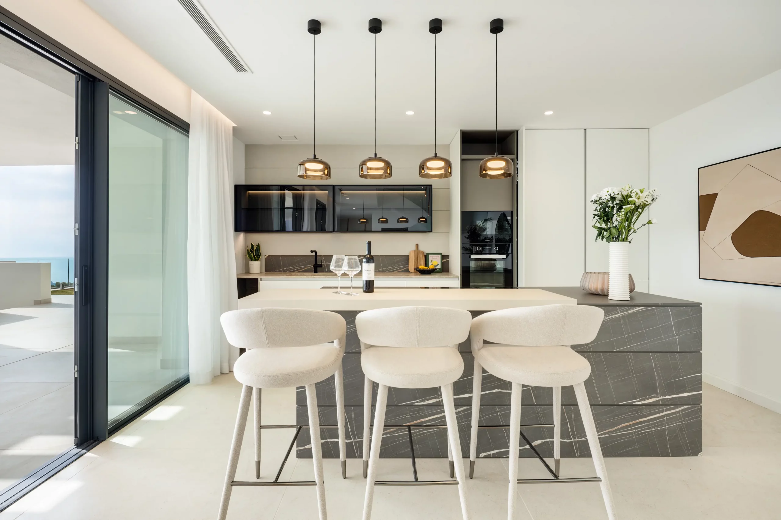 This property’s contemporary architecture split across three levels, features an open plan Kitchen layout with High-end Kitchen & bathrooms from the Italian top brand Modulnova.