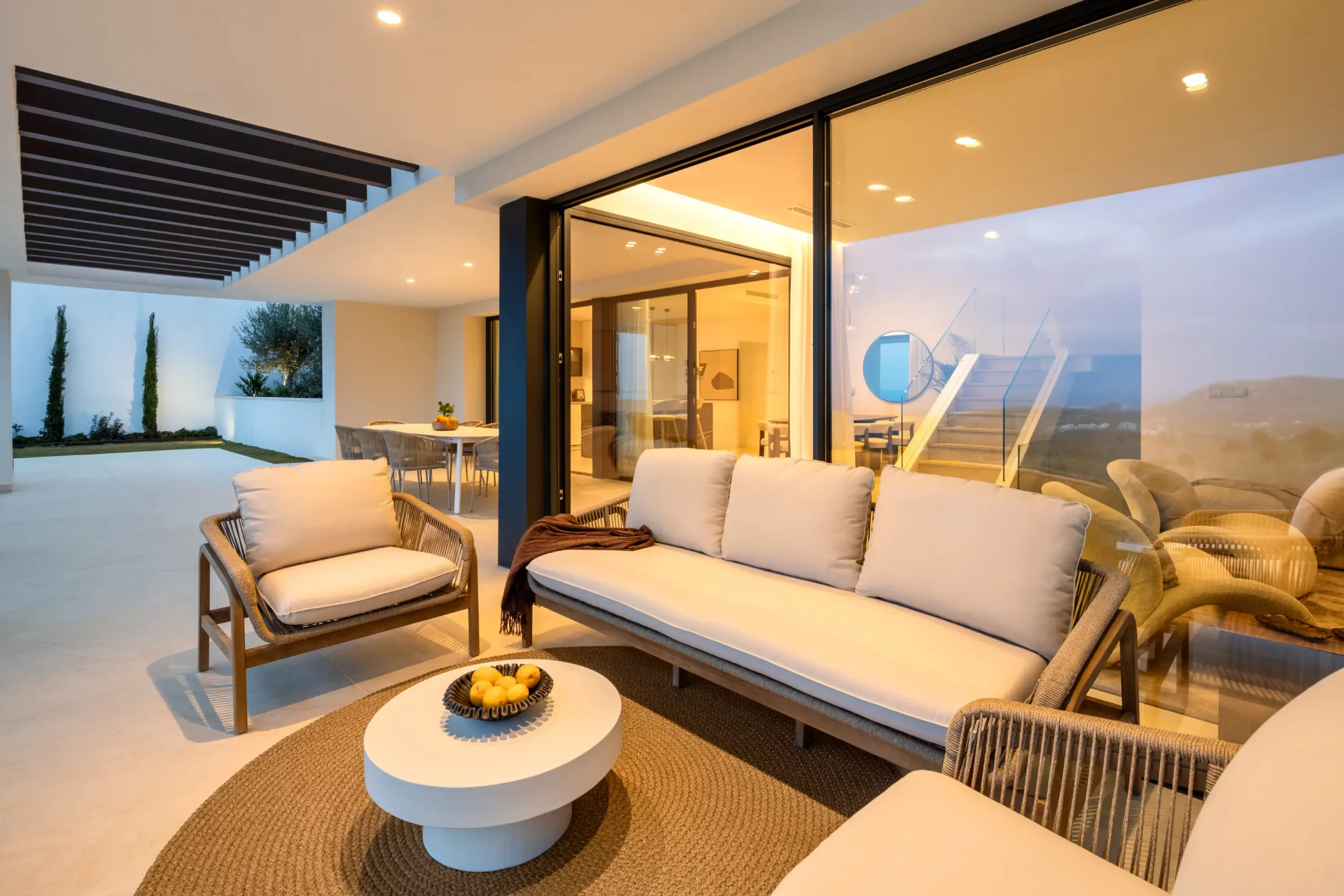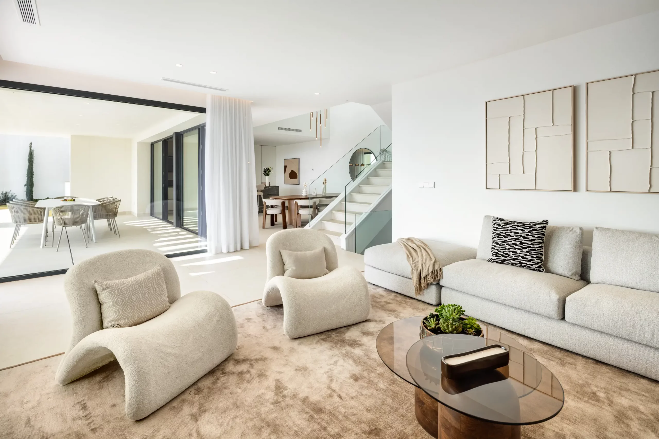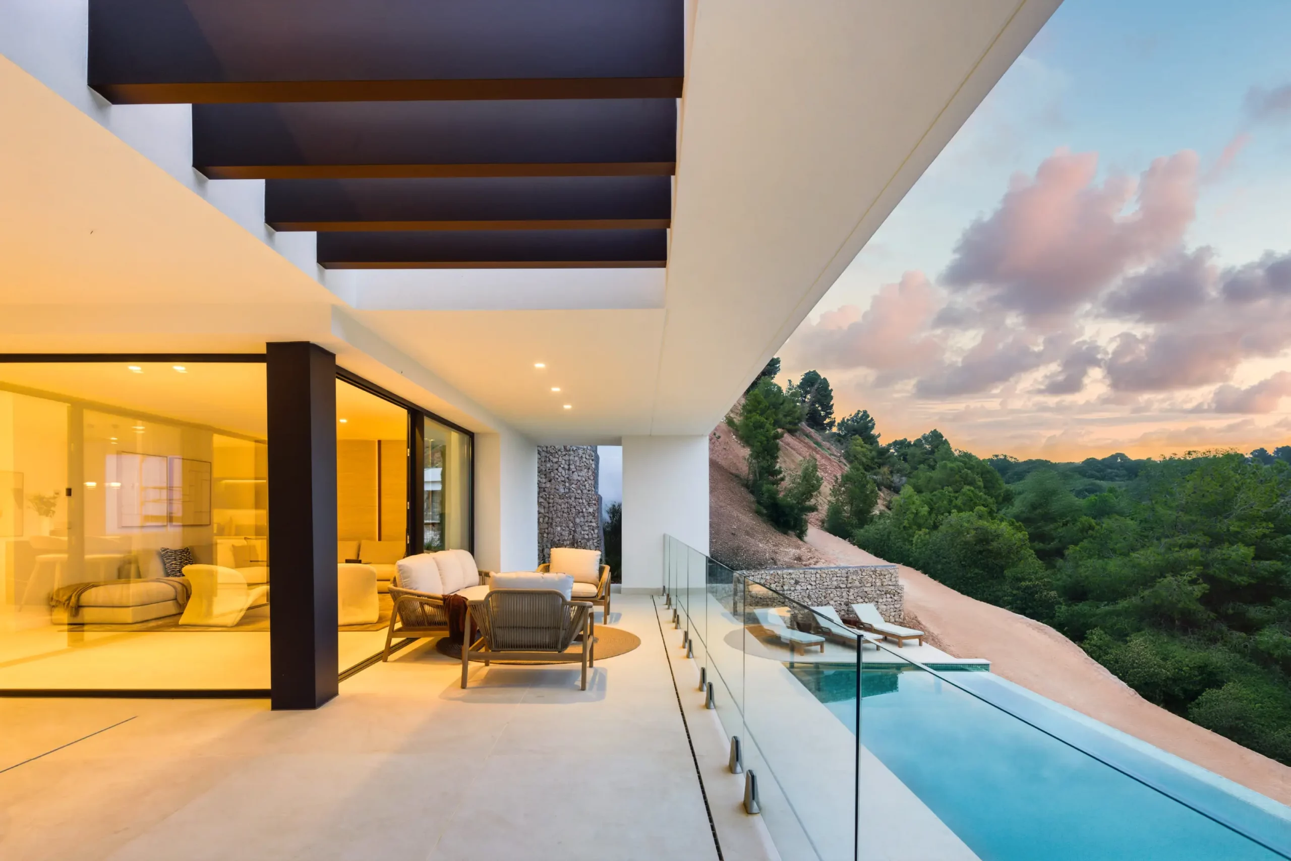 The villa has elegant simple façades and extensive use of glass, ensuring maximum natural light and space throughout. The terrace doors provide direct access to stunning covered and open terraces, with an exterior dining & BBQ areas, and of course a large private pool