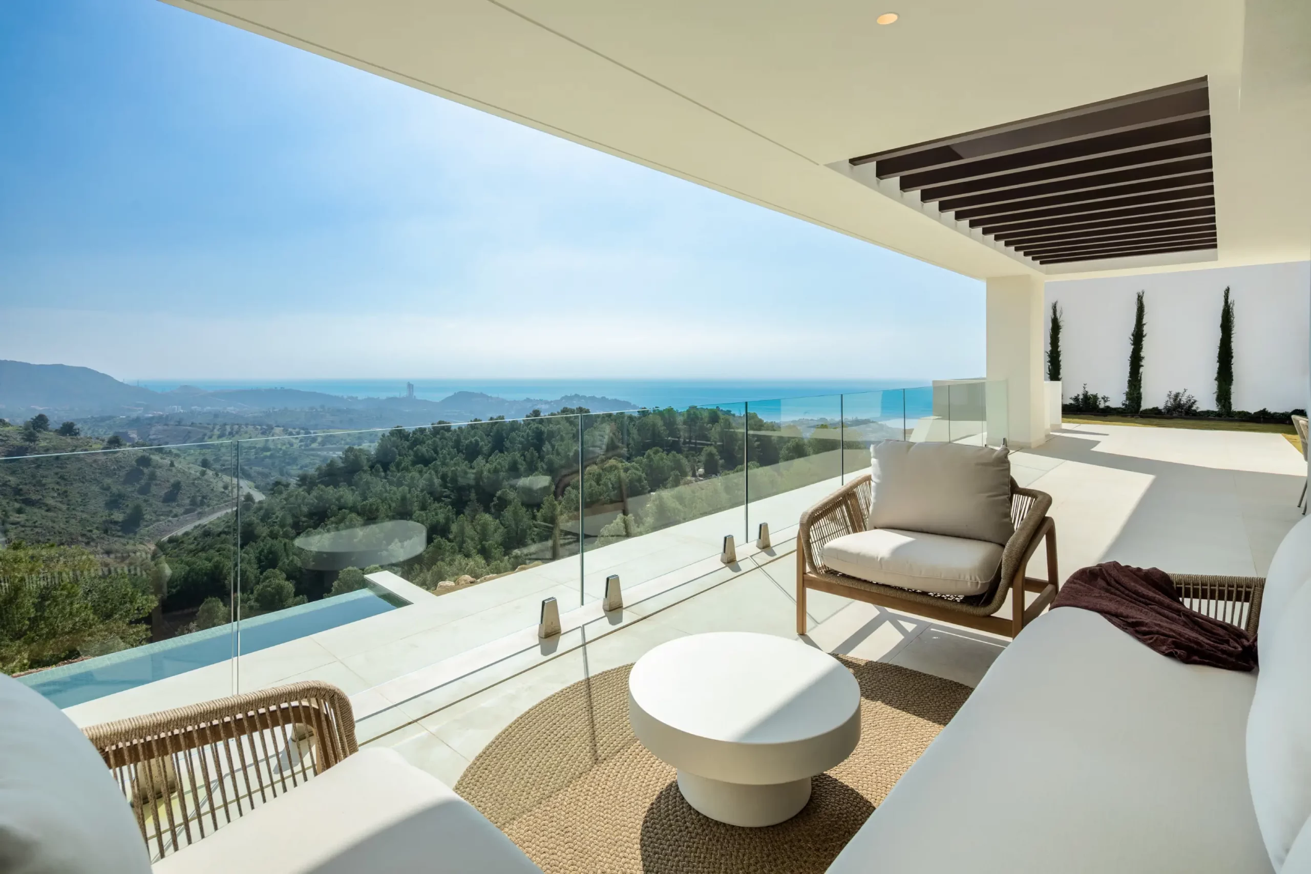 Villa 7 is a modern luxury villa in this prestigious Pinares de San Antón gated community in the sought-after area of Málaga Hills, occupying an elevated position afforded unparalleled panoramic sea and city views. Villa 7 is situated in the middle of the project with open sea views