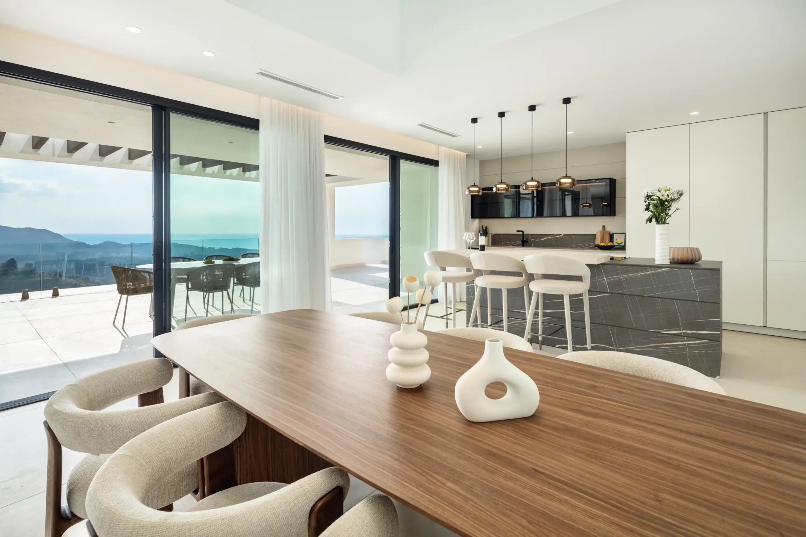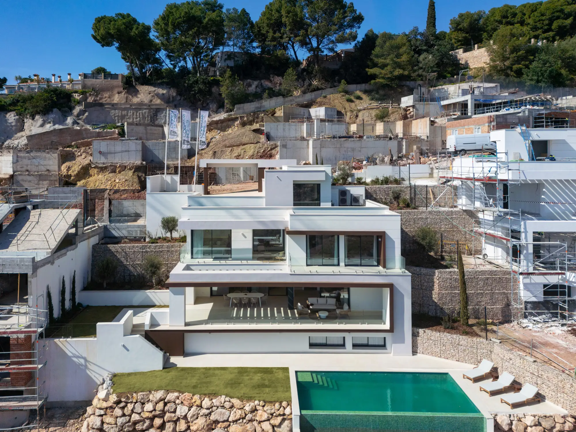 The villas contain 4 bedrooms, including a master suite with open terraces, 4 boutique style bathrooms and an additional guest toilet. Other features include a wine cellar, office, entertainment room, private office and garage for 3 cars.