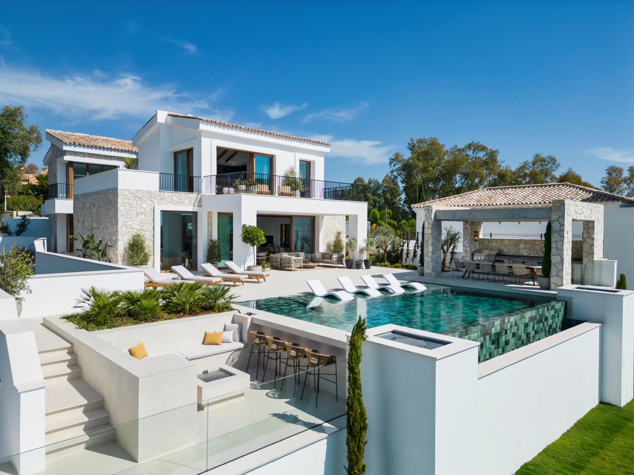 The BBQ area for those lovely late night outside dinners is developed to next level with high capacity, spectacular views and integrated with the pool and the chill lounge.